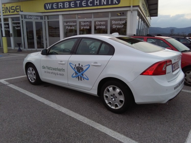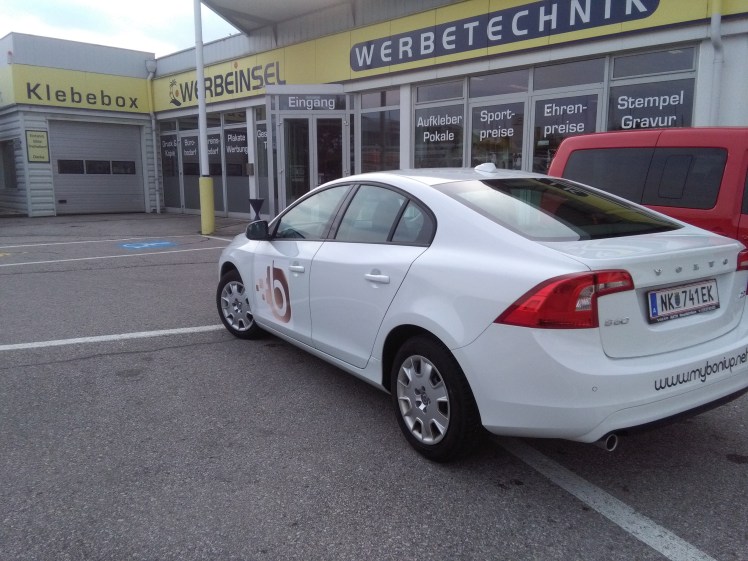 Konkret geht es um meine Autobeschriftung – und ich gestehe, es war schon irgendwie eigenartig als ich mit dem Auto zur Werbeinsel gefahren war