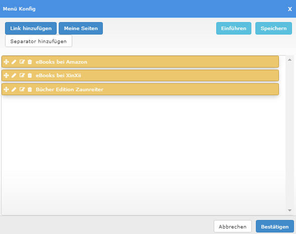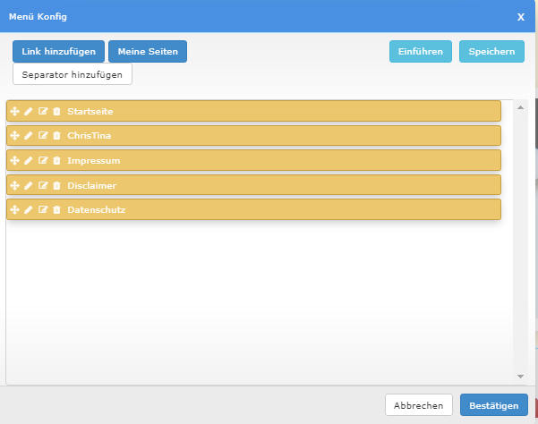 -> mit der Mülltonne kannst du Menüpunkte löschen