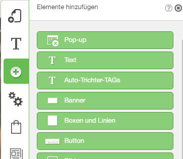 Die Buttons findest du beim linken + – dort hast du dann zahlreiche Möglichkeiten der vorgestalteten Buttons – und du kannst sie danach farblich noch gestalten, wie immer es dir beliebt – sowohl Hintergrund, als auch Rahmen und Schattierungen: