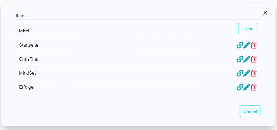 Wenn wir das Menü selbst bearbeiten wollen, müssen wir das direkt im Menü mit dem 3. Symbol von links, bzw. 4. von rechts:
