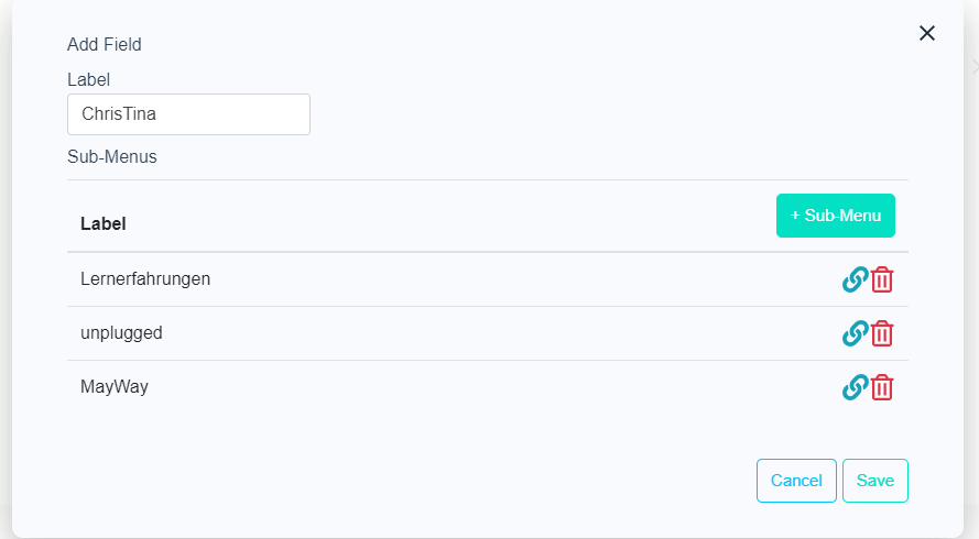 Ich habe hier schon Namen vergeben – wie auch immer, mit dem Bleistift können wir das umbenennen – und auch die Untermenüs festlegen:
