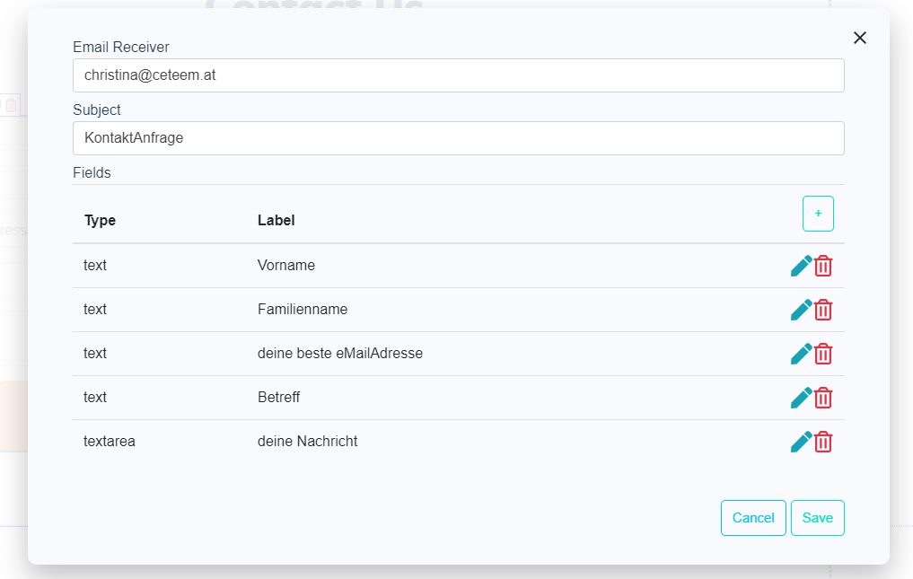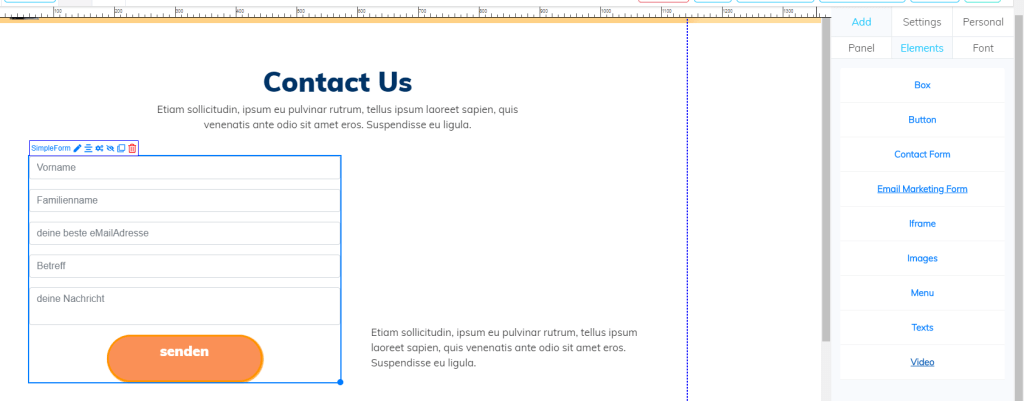 Beim Kontaktformular suchst du dir das aus, was dir gefällt