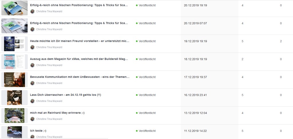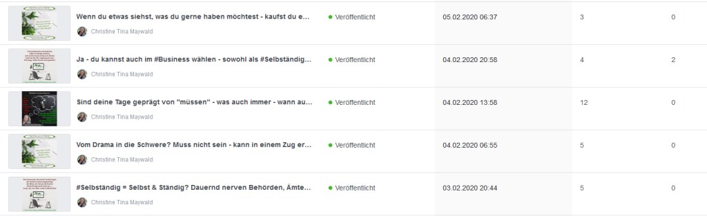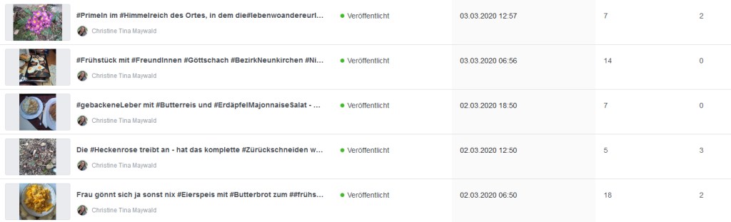 Wobei ich auch dazu sagen muss, dass es eine PushGruppe auf WhatsApp dazu gab – oder gibt – wo gegenseitig darauf hin gewiesen wurde – und wird – wer was postet – und dann alle rüber gehen, um zu kommentieren – in dieser Gruppe bin ich nicht – von daher explodiert mein Konto aber auch nicht – nur, ich hätte dafür nicht auch noch Zeit – war auch der Grund, warum ich nicht mit mache – und ab und zu verirrt sich ja doch die Eine oder der Andere zu mir 😉