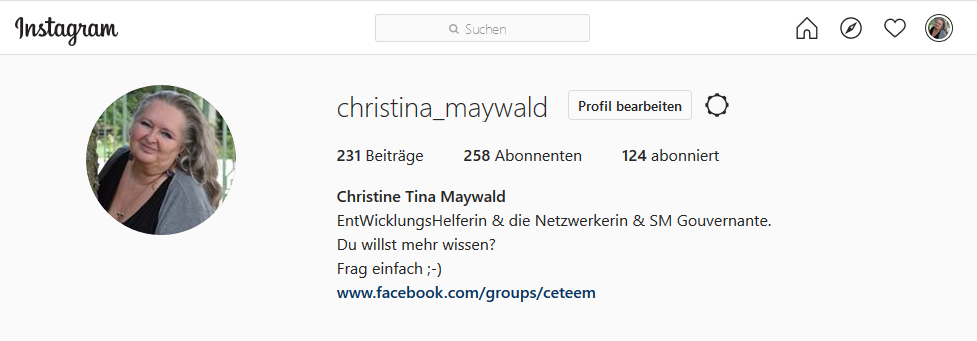 Ja, es sind einige aus unserer Community dabei – wir haben in der Gruppe unserer Challenge unsere entsprechenden Links geteilt – und folgen uns auch gegenseitig – aber ich habe auch viele Follower, die von selbst gekommen sind.