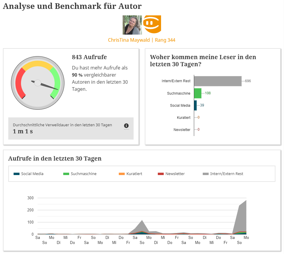 Ich bin dort schon seit Jahren – konkret seit 4. April 2013 – und ich habe die Plattform eigentlich immer nur genutzt, um Bekannten – oder Menschen, die mir zu der Zeit wichtig waren – etwas weiter zu helfen in der Online Welt – weil – ich schreibe gerne – und ich hatte auch immer nette Zugriffszahlen bei meinen Beiträgen.