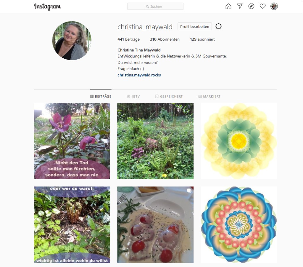 Ich habe jetzt ganzen April und Mai je 3 Postings auf Instagram gemacht – eins in der Früh – eines Mittags – und eines Abends – und der Stand meiner Follower schwankt so zwischen 290 und 310 – in etwa.