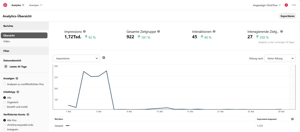 Nachdem die Reichweite durch die gekürzten Amazon Links ins Bodenlose gefallen war, hab ich mich nicht wieder nachhaltig erholt. Auch die automatische Verknüpfung mit Instagram lässt zu wünschen übrig.