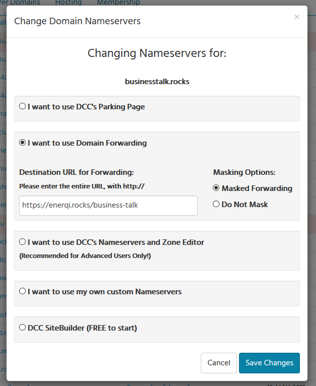 Ich hab jetzt grad 4 Domains registriert – und diese leite ich mit einer maskierten Weiterleitung um auf die Einzelseiten in Cheetah, damit sie auch einzeln aufgerufen werden können.