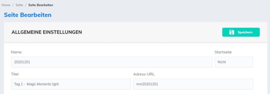 Und ich hab auch die Einstellungen für die Seite eindeutig zugewiesen: