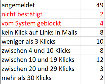 Wenn ich jetzt davon ausgehe, dass von 50 TeilnehmerInnen 5 damit was anfangen konnten, dann finde ich das schon ganz nett. Und vielleicht kommen ja auch andere noch dazu, einige Tage nach zu holen – mal sehen, wie die Statistik in 3 Wochen aussieht.