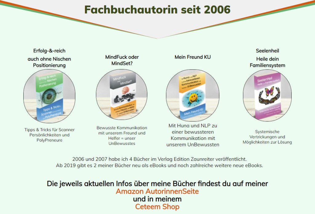 Auf dieser WebSeite habe ich für jede DetailSeite jeweils ein eigenes Hintergrundbild fest gelegt – aus den Images, welche von Builderall zur Verfügung gestellt werden – und habe darüber einzelne verschiedenfarbige und unterschiedlich intensiv transparente Banner gelegt.