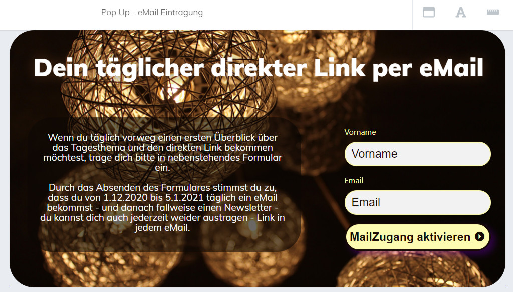 Da es sich bei einem PopUp um keine eigenständige Seite handelt, verlinke ich auch kein Impressum und Datenschutzerklärung 😉