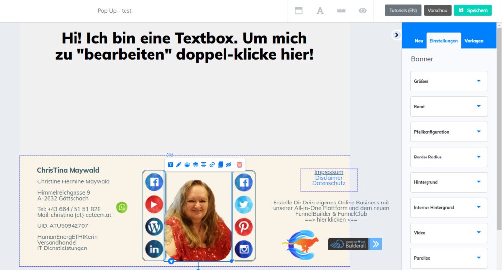 Danach gestaltest du dieses PopUp und speicherst es ab – du hast jetzt das PopUp erstellt, musst es dann aber irgend einer deiner Seiten in der aktuellen WebSeite