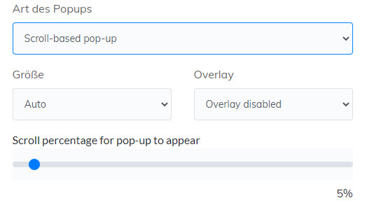 Bei dieser Art legst du fest, nach wie vielen Prozent des Scrollens das PopUp aufploppen soll