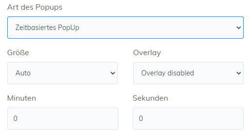 Bei dieser Art stellst du die konkreten Sekunden oder Minuten ein, nach welchen das PopUp aufploppen soll