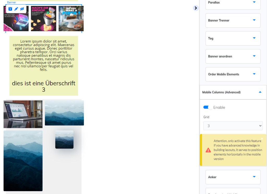 Und immer genau schauen, ob du wirklich in der Bearbeitung des richtigen Banners bist – ist meist etwas außerhalb der normalen Mobilbreite anklickbar