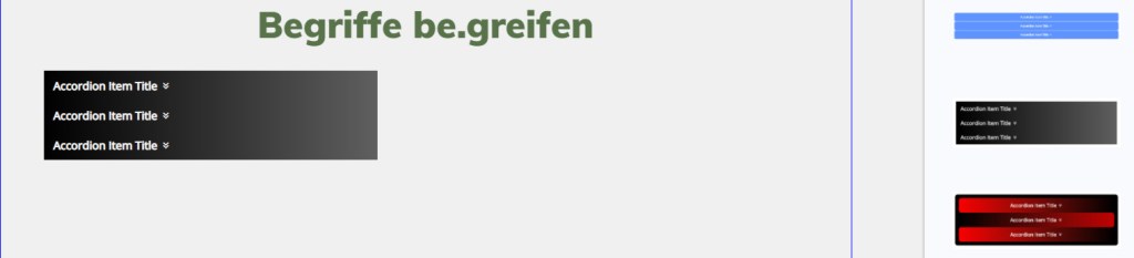 ACHTUNG: DIe einzelnen Punkte klappen (noch) nicht automatisch wieder ein, wenn eine weitere Frage angeklickt wird, daher passe das Banner an das höchste Accordion an – ev. so, dass 2 Punkte angezeigt werden können – damit auf keinen Fall etwas abgeschnitten wird.