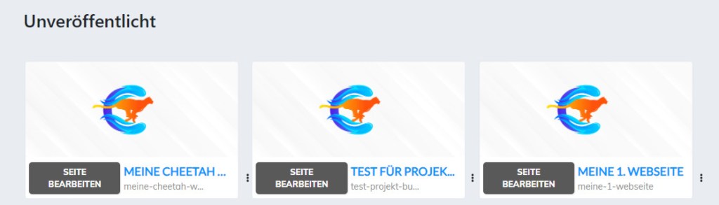 Und so schaut die Bearbeitungsansicht in Cheetah aus – du siehst das, was vorher rechts vom / stand jetzt hier als Seitenname darunter: