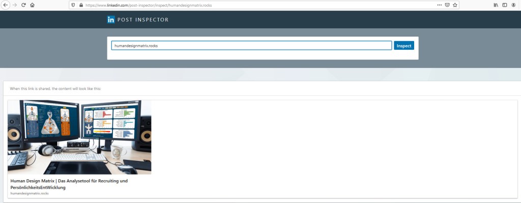 auch hier wieder – zuerst die Adresse eingeben – und dann auf – Inspect – damit die Seite neu durchforstet und di VorschauDetails geändert und aktualisiert werden: