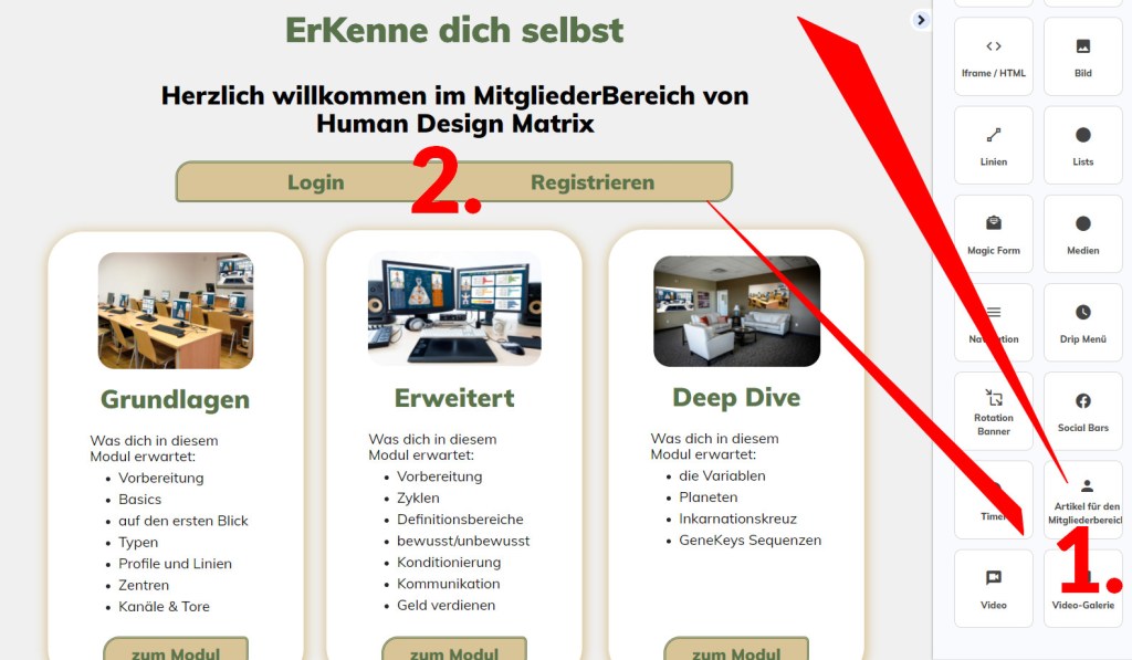 Ich hatte schon mal einen kostenlosen Mitgliederbereich für eine Seite, auf der man sich einfach registrieren konnte – die Inhalte dieses Bereiches kommen jetzt dann in die BezahlVersion über Digistore24 mit rein – dabei arbeite ich mit dem eLearning Tool und binde dieses über iFrame auf jeweils eine eigene Seite ein.
