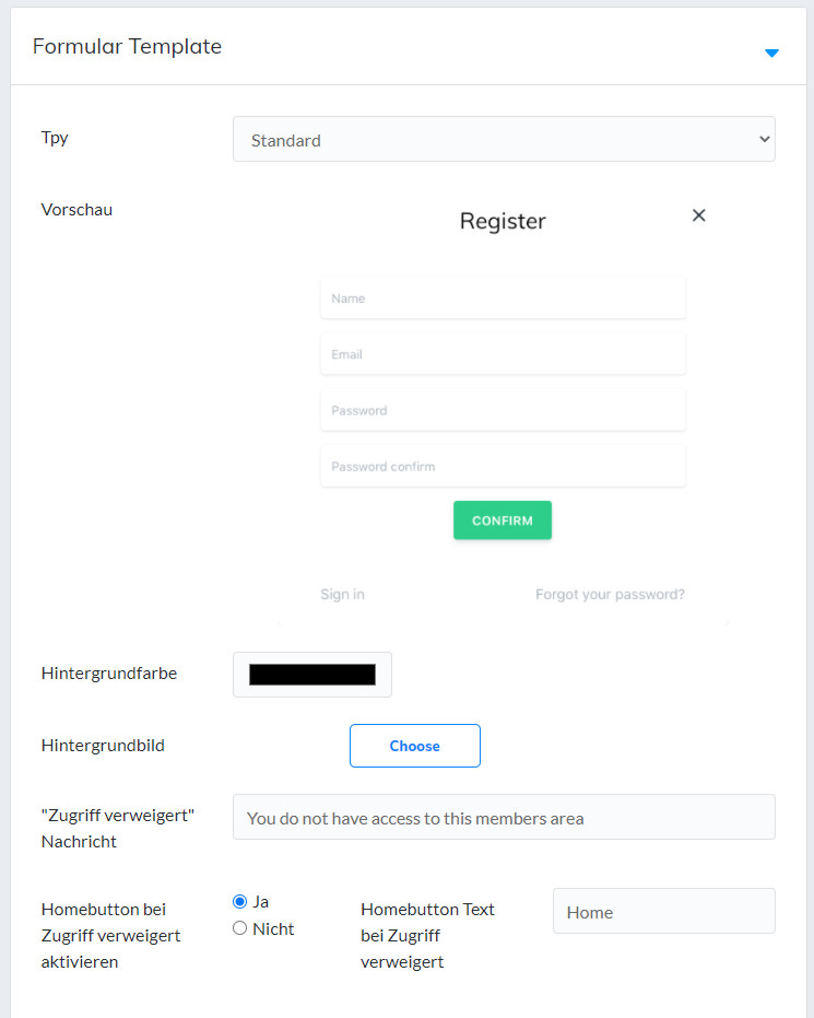 Zuerst musst du festlegen, wie das Formular aussehen soll – bei Bezahlversionen brauchst du nur Login-Formular, aber zuerst mal den Typ (Tippfehler im Formular) und ob hell (Light) oder dunkel (Dark) und falls du den Mitgliederbereich für – jeder kann sich registrieren – auslegst, brauchst du beides, damit man sich registrieren kann: