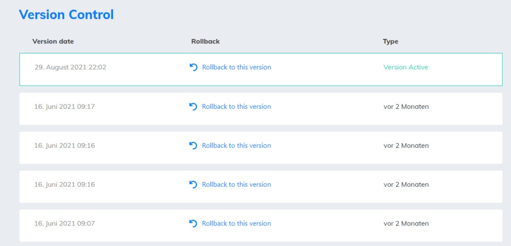 Wenn du drauf kommst, dass du etwas überschrieben – und schon neu abgespeichert hast, kannst du auf eine frühere Version der Seite zurück gehen, indem du bei der Seitenübersicht auf die drei Punkte klickst – und danach – Versions – auswählen