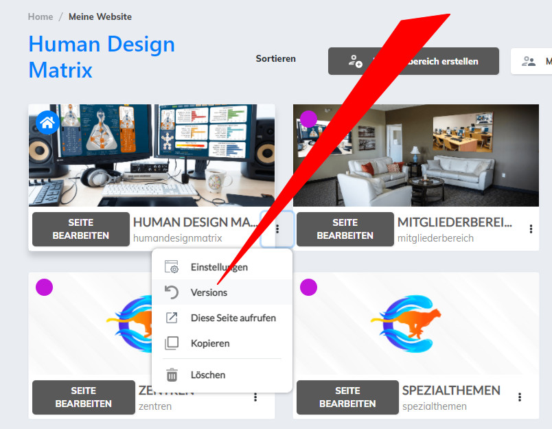 Wenn du ganze Seiten gelöscht hast – auch, wenn dies schon länger her ist – kannst du sie im linken Bereich wiederherstellen – oberhalb der Mitgliederbereiche.