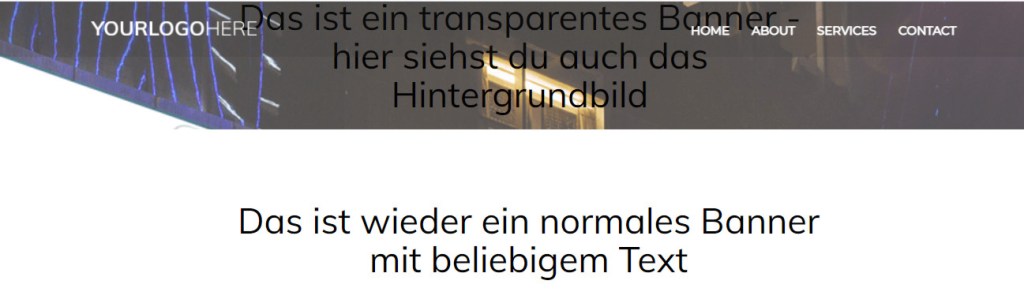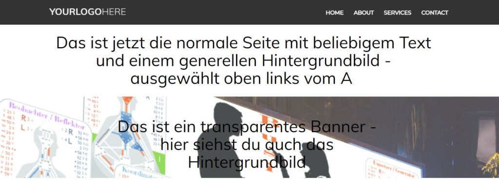 Ich hab jetzt im Beispiel 2 Header angelegt, wobei ich beim 2. einfach den Hintergrund ziemlich transparent gemacht habe – und in der Seite selbst gibt es ein Hintergrundbild – wie auch von Katharina im Video vorgeschlagen: