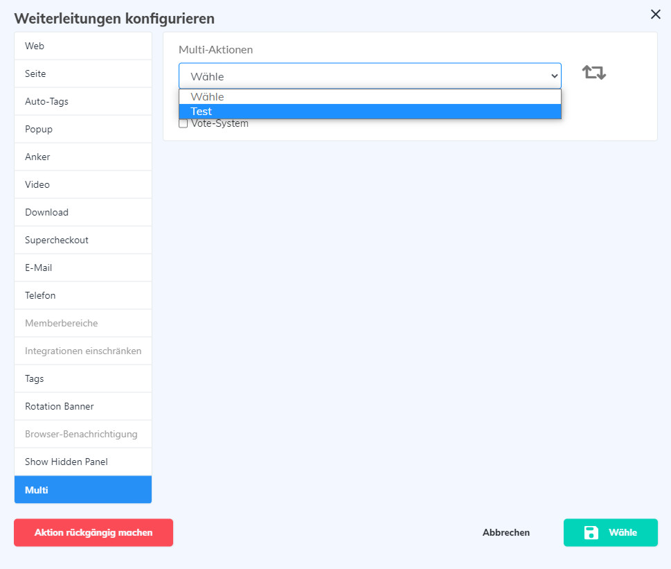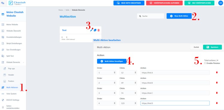 Du kannst bei den einzelnen Aktionen sowohl die Anzahl der Clicks, als auch die jeweiligen Actionen = Adressen ändern.