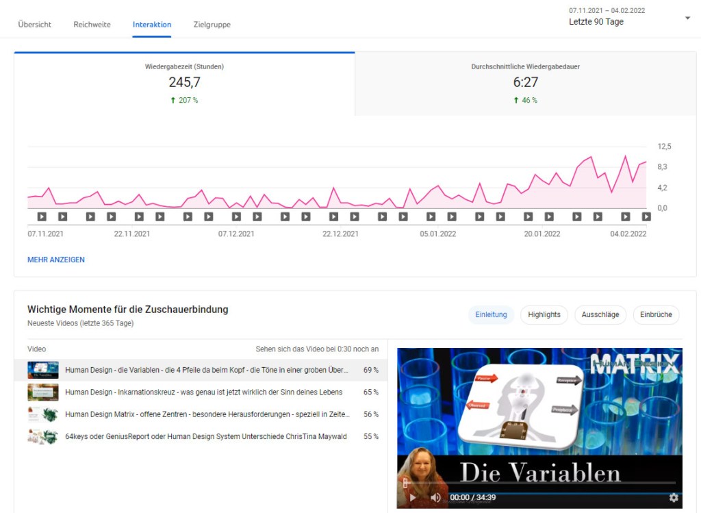 Auch hier siehst du wieder – also unten in der Übersicht bezüglich Zuschauerbindung – die Variablen und Inkarnationskreuz – gefolgt von den Videos, die auch früher schon immer wieder angeschaut wurden.