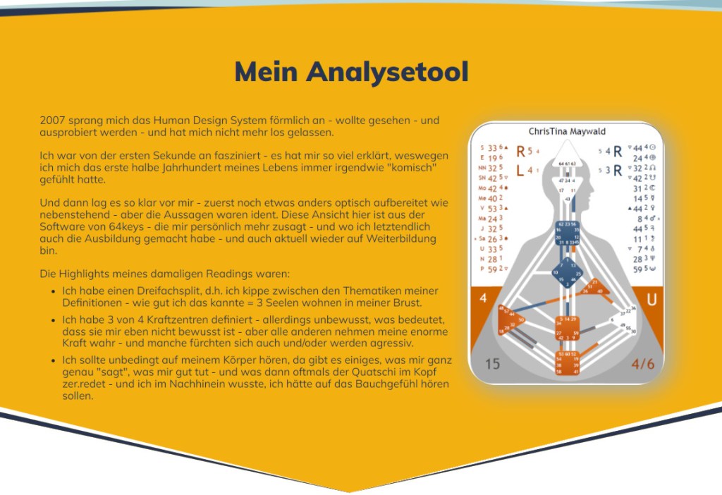 Hier dann eine ganz kurze Vorstellung meines Analysetools, damit InteressentInnen auch wirklich wissen, womit sie es zu tun bekommen, wenn sie sich auf mich einlassen – ich gestehe – mich nerven die ganzen Postings in Facebook, wo dann Infos per PN angefordert werden können – ich steh zu dem, was ich mache 😉
