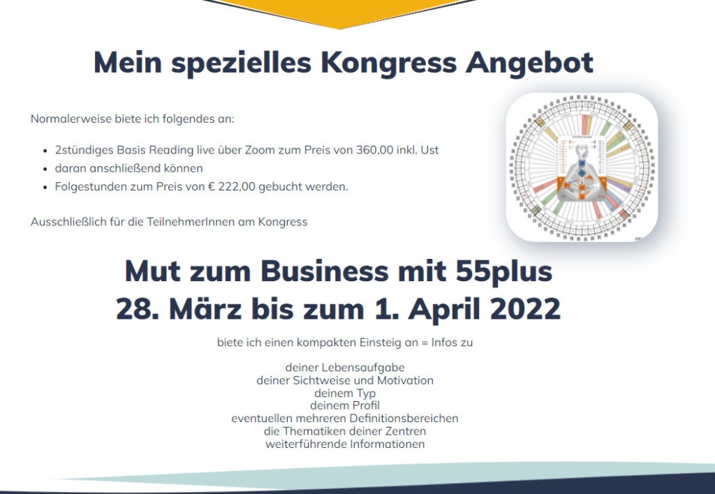 Wenn wir jetzt davon ausgehen, dass das Paket – bis zum Kongress € 42 exkl. Ust. kostet – und danach noch für ein Jahr online bleibt – dann aber zum Preis von € 79 exkl. Ust. – dann zahlt es sich auf jeden Fall aus, das Paket zu erwerben, falls wer an einer Zusammenarbeit mit mir interessiert ist.