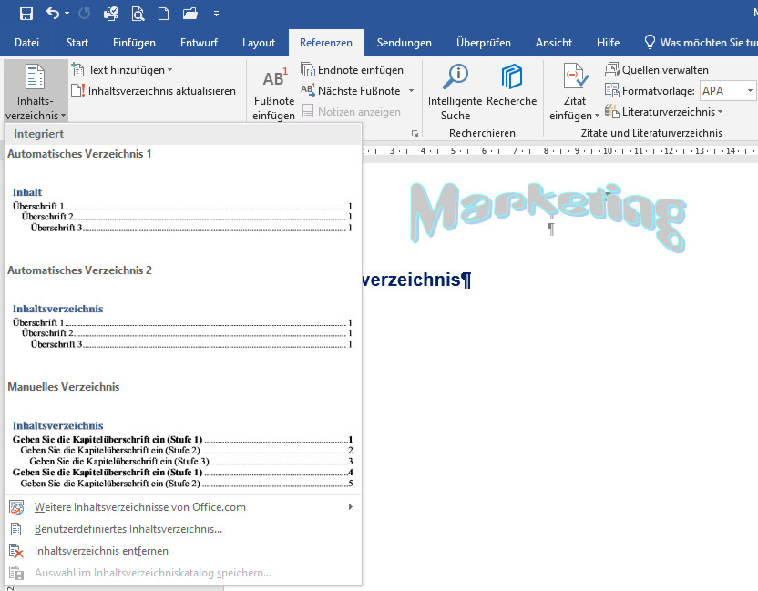 Wie funktioniert jetzt so ein Inhaltsverzeichnis in Word?
