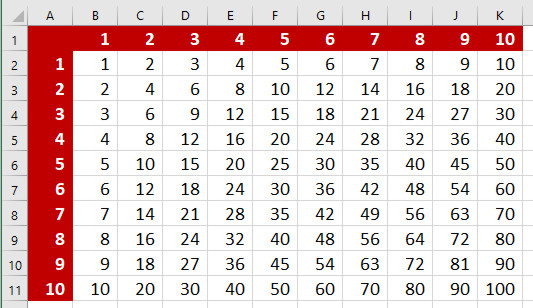 Hier noch eine Aufgabe, die ich früher in fortgeschritteneren Kursen immer gestellt habe – Lasse mit einer Formel diese Tabelle berechnen:
