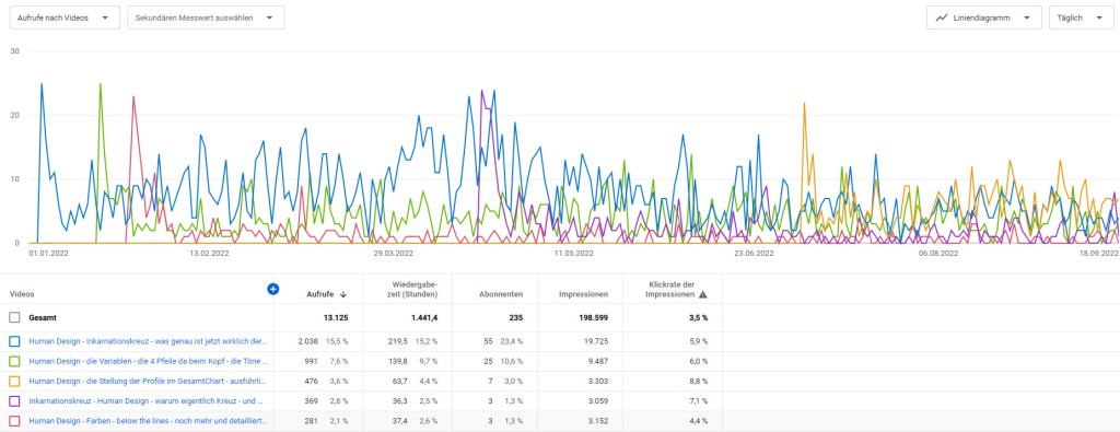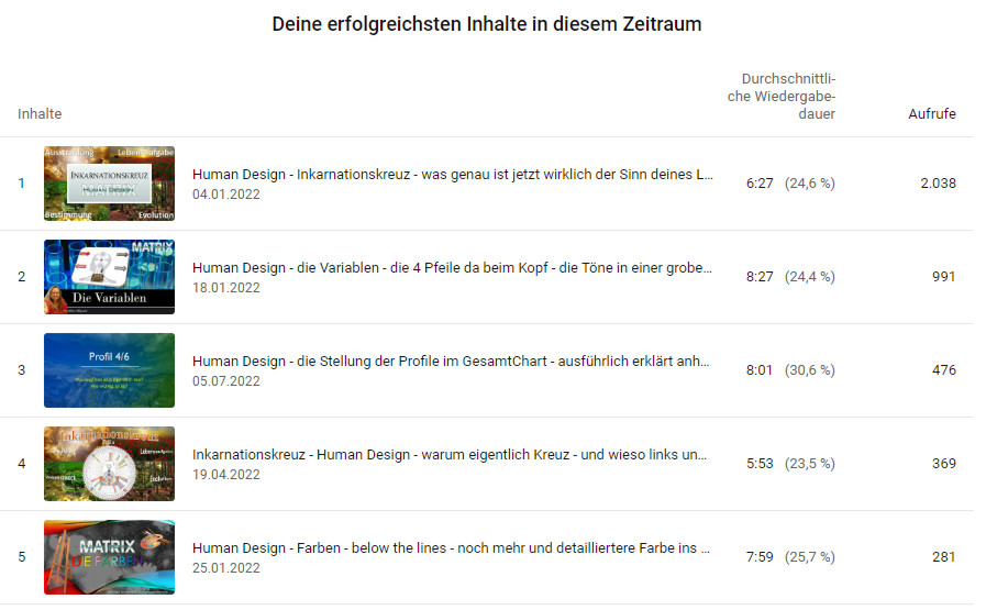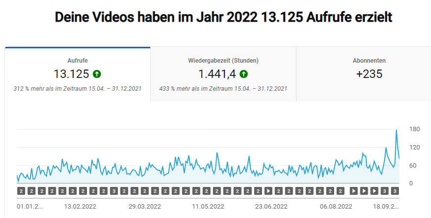 Und hier jetzt noch die bisherige JahresStatistik von 2022 der Top 5 Videos – wobei das mit dem Profilen noch relativ neu ist – da geht sicher noch etwas bis Jahresende 😉
