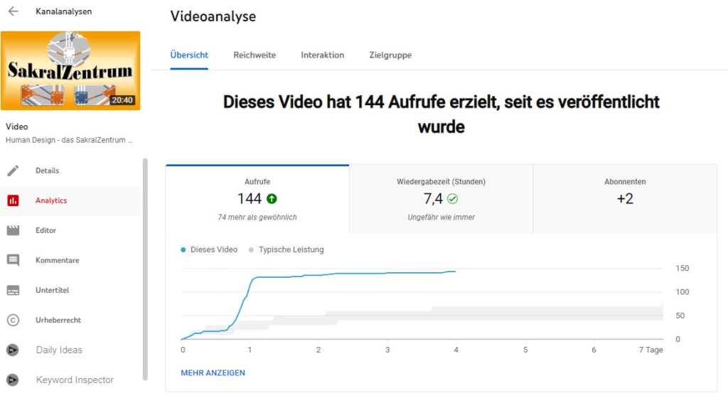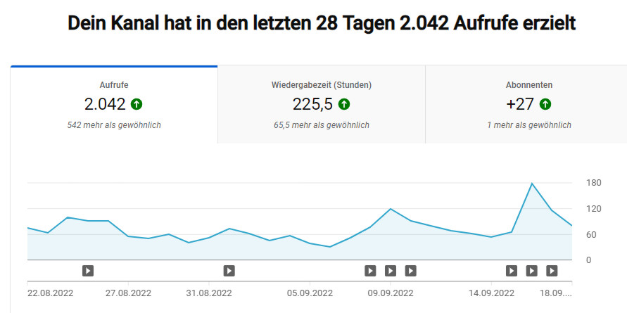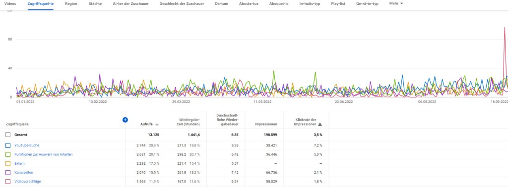 Doch kommen wir jetzt gezielt zu diesem einen Video. Ich hab das Video am Donnerstag, 15.9.2022 um 16:45 veröffentlicht – und jetzt, wo ich diesen Beitrag schreibe, ist es Montag, 19.9.2022 kurz vor Mittag: