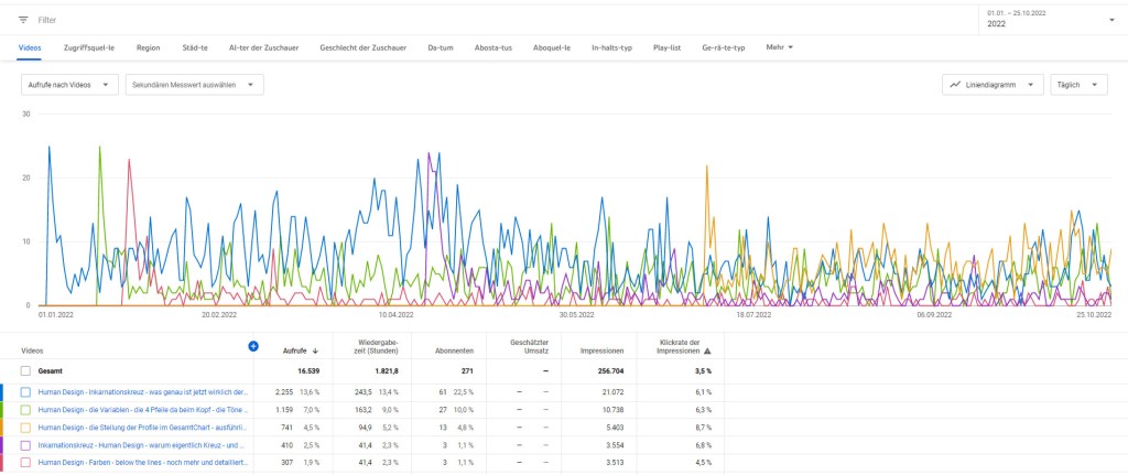 Ja – klar – ich könnte auch meine Thumbnails so optimieren, dass Menschen, die keine Ahnung von Human Design haben – ständig irgendwie drüber stolpern – aber ich weiß auch, dass die dann eher ent.täuscht wären – und sicher keine bleibenden AbonnentInnen würden – ein derartiges typisches Beispiel kann ich dir auch zeigen: