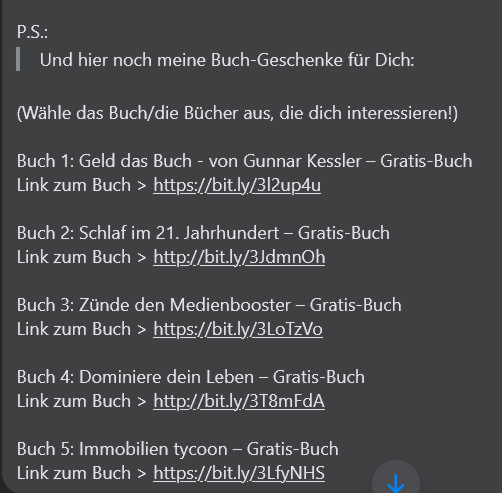 Wie könnte man dieses Bücherangebot ver.ändern, um damit auch eigene Leads zu erzeugen?