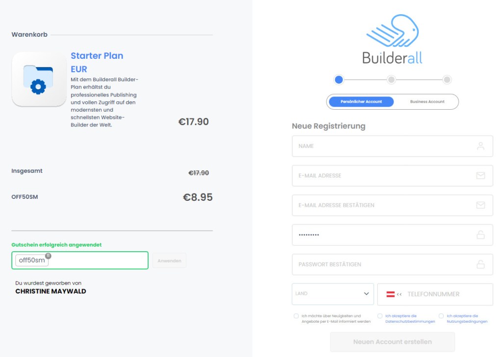Und so funktioniert er – ganz einfach beim Feld Rabattcode (grün) eingeben – registrieren – und los geht’s: