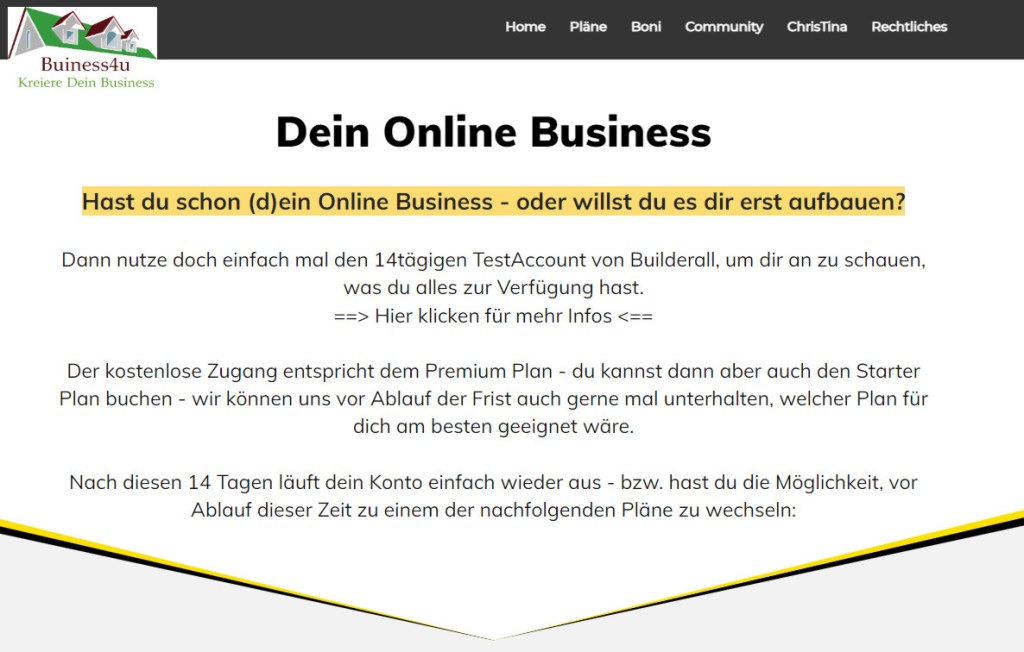 Und dann kam ich auf die Idee, dass die Seite überhaupt umbauen könnte – und daraus meine neue Seite über Builderall machen könnte – und während ich herum bastelte, kam mir dann die Idee mit der neuen SubDomain ==> online.business4u.rocks