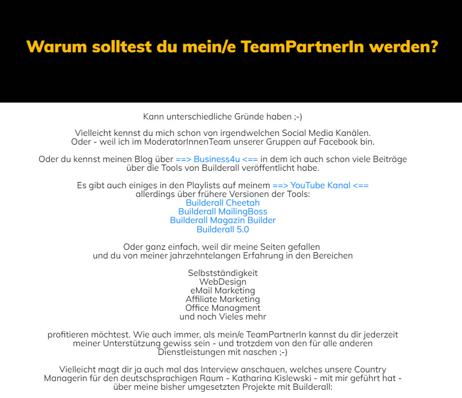 Dann gibt’s noch einen Banner, warum jemand grad bei mir einsteigen sollte – also einige meiner Erfahrungen, die ich zusätzlich bieten kann: