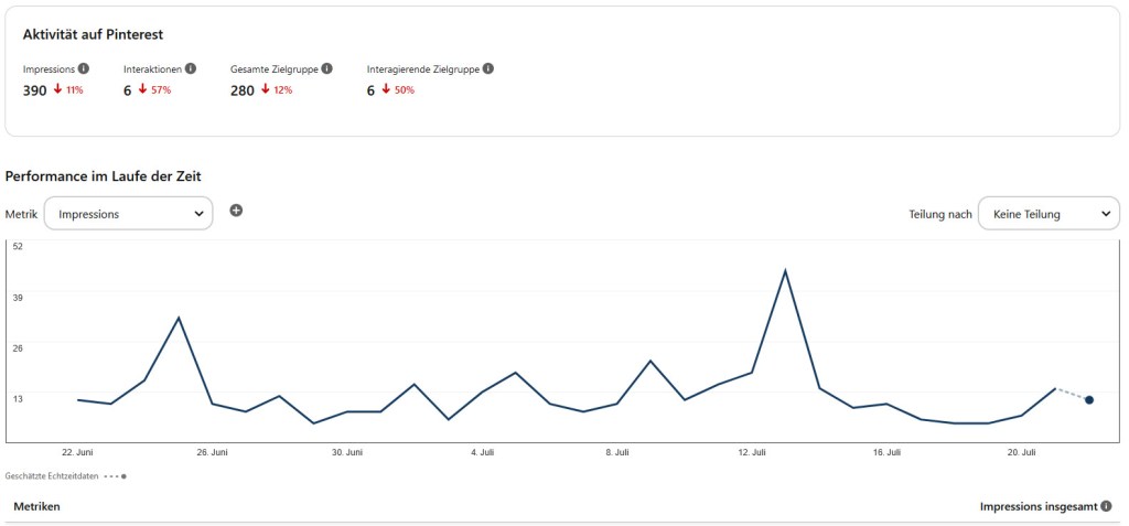 Wobei es in Katharinas Live darum ging, dass sie schon länge nichts gemacht hat und trotzdem noch über 1K Zugriffe pro Monat hat – also hab ich mir meine Statistik angeschaut – und siehe da – so schlecht ist es auch bei mir gar nicht – dafür, dass ich schon ein Jahr lang nichts mehr ge.pin.t hatte.