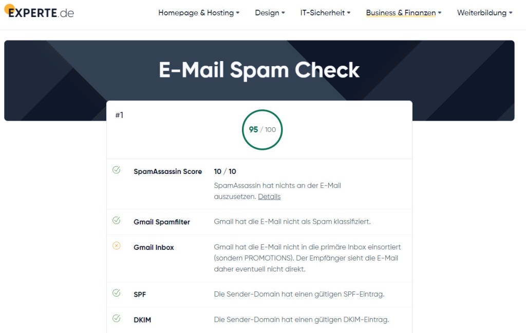 Danach eventuell den Inhalt optimieren, wenn der SpamScore schlechter ausfällt.