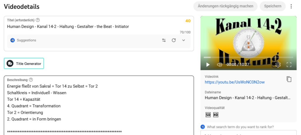 Dieser Name wird dann auch automatisch als Titel bei YouTube übernommen, sobald ich das Video hoch lade – und ich kopiere den auch ans Ende der Beschreibung – zusammen mit dem Link – für alle Fälle, wenn mal ne Suchmaschine von hinten scrollt – und sicher = sicher 😉