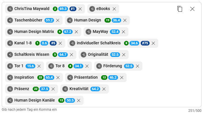 Und wenn die 36 Videos dann auch alle hochgeladen sein werden – und jedes einzelne nach dem vorgenannten Kriterien benannt wurde – wird das auch meiner Sichtbarkeit bei Tante G. nützlich sein – unabhängig von der gesteigerten Anzahl an Abonnenten, die dadurch auf mich neu aufmerksam werden 😉