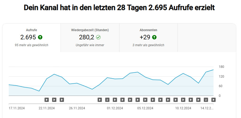 Heute möchte ich euch einen ZwischenLageBericht geben – in Bezug darauf, wie sich mein YouTube Kanal seit Beginn der Action ent.wickelt hat.