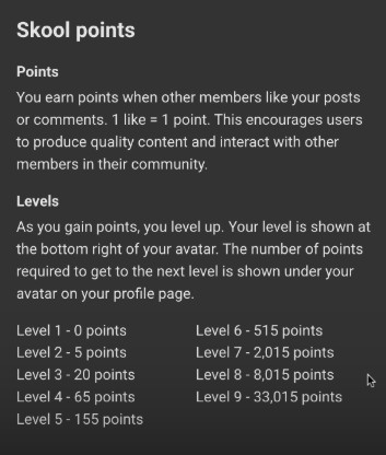Also dort steht, was mit welchem Level freigeschalten wird – und wie du den nächsten Level erreichst, findest du im Einstiegsvideo von Katharinas Onboarding zu Skool – Kurzfassung – Punkte „verdienst“ du dir, wenn jemand deine Beiträge und/oder Kommentare liked.