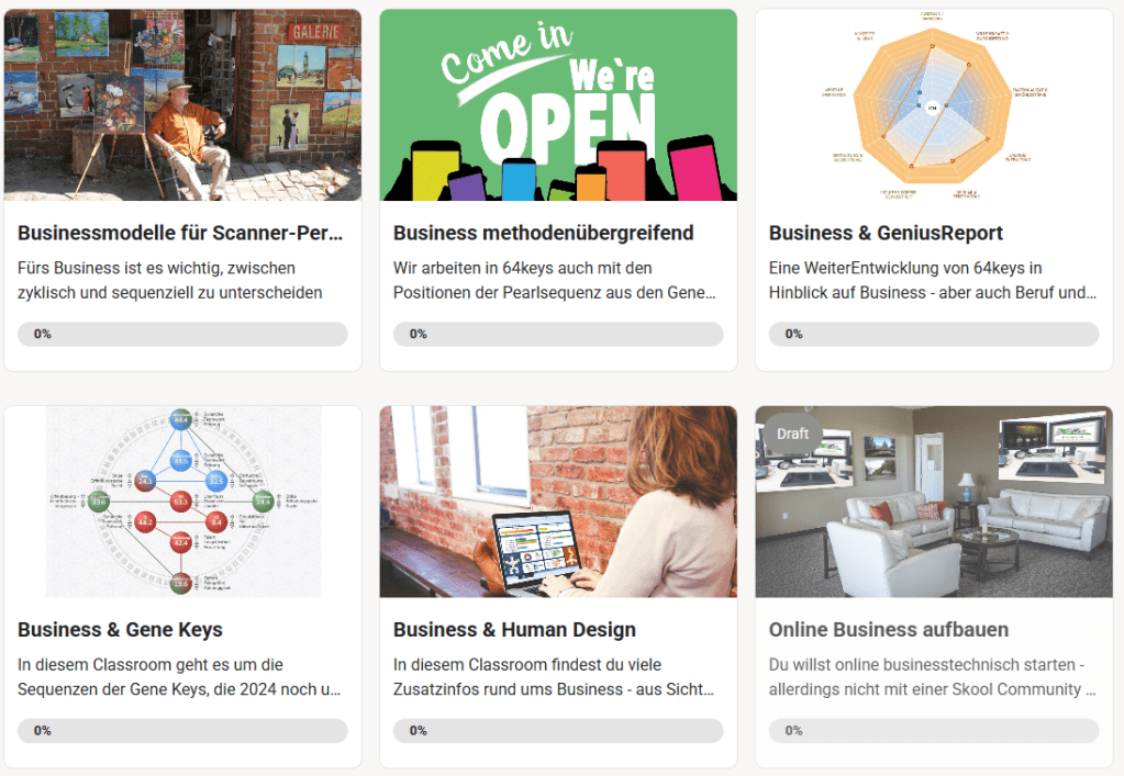 Aktuell bin ich am Befüllen der Classrooms für Level 5 = alles, was mit Human Design zu tun hat.: