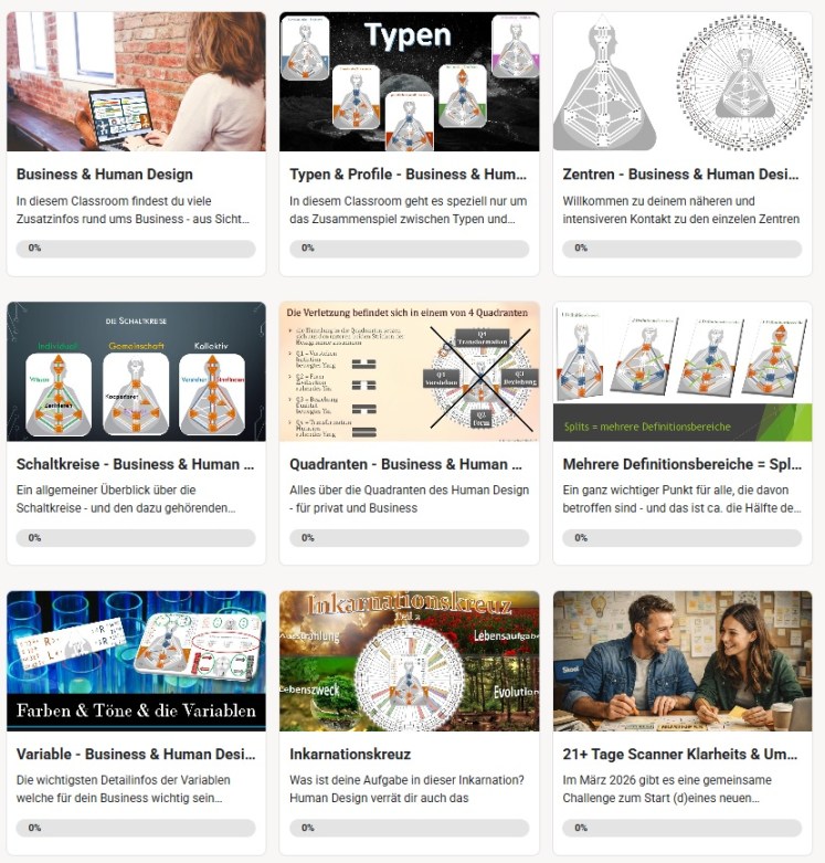 Wobei es selbstverständlich auch eigene Classrooms zu den einzelnen Human Design Themen in Bezug auf Business gibt: